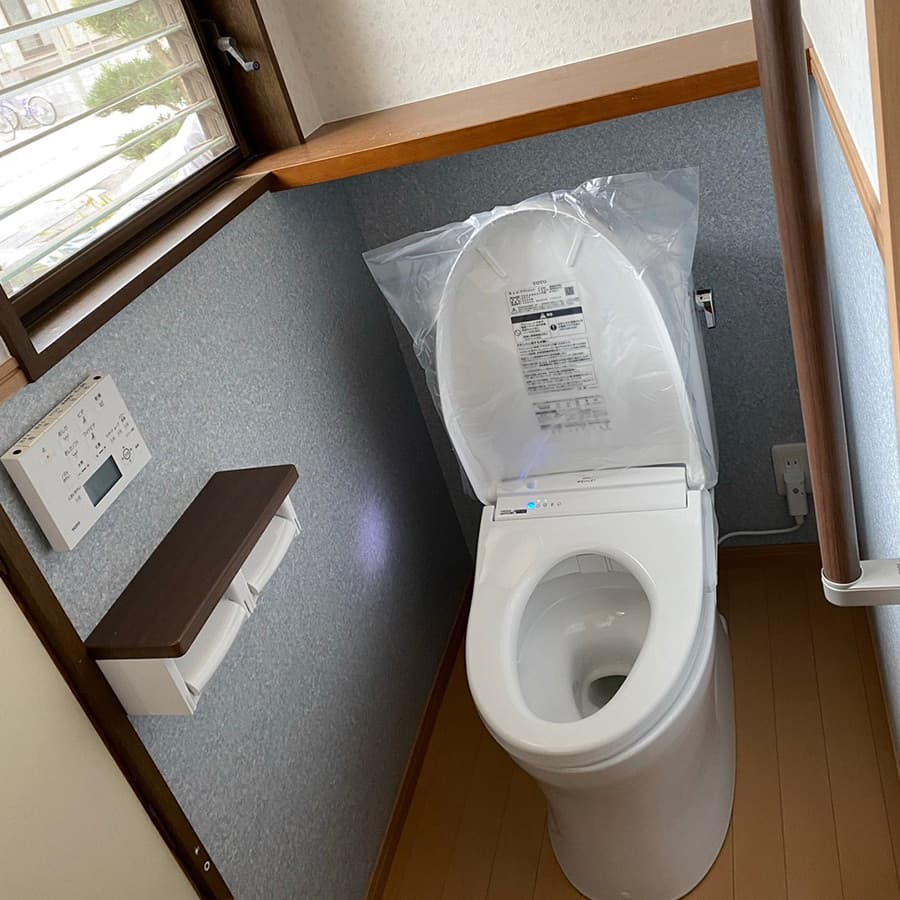 床をフローリングに変え、壁もクロスを張りました。トイレも丸ごと取替え、以前のトイレとと雰囲気をガラッと変えました。